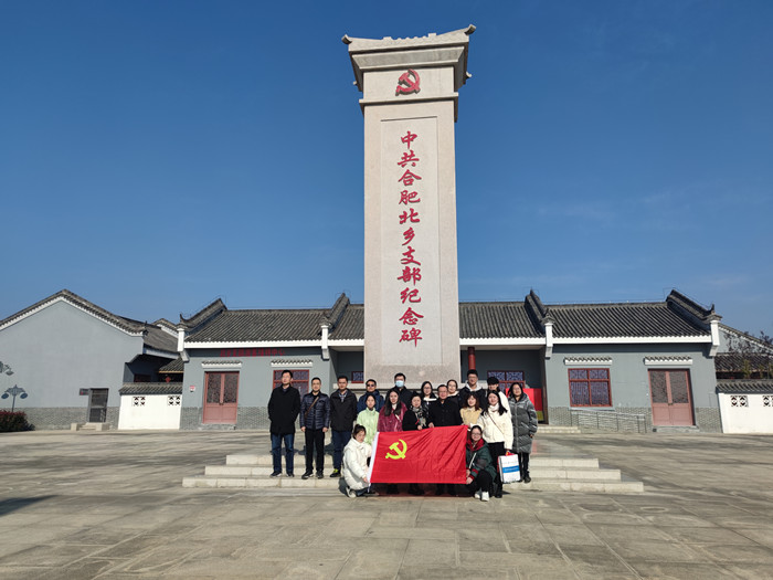 中共合肥北乡支部纪念馆位于长丰县造甲乡,是合肥地区成立最早的党组织。屹立的纪念碑、生动的雕塑群,一幅幅图片、一件件实物,随着讲解员的娓娓道来,第三党支部师生一行深入了解了崔筱斋等革命先烈创建北乡党支部、领导双河集暴动、建立安徽省农民运动委员会成立时期的光辉历史,感受到共产党人对理想的不懈追求、对人民的无限深情、对事业的无比忠诚,进一步提升了党性修养,坚定了理想信念。